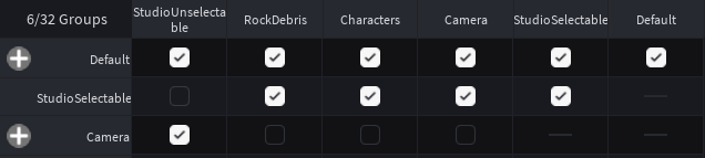 local function canOcclude(part)returngetTotalTransparency(part) < 0.25 andpart.CanCollide andsubjectRoot ~= (part:GetRootPart() or part) and(not part:IsA("TrussPart")) andPhysicsService:CollisionGroupsAreCollidable(part.CollisionGroup, "Camera")end